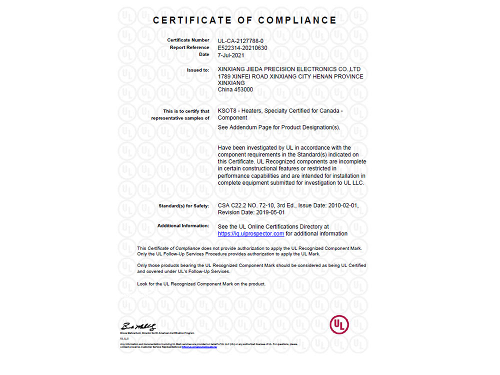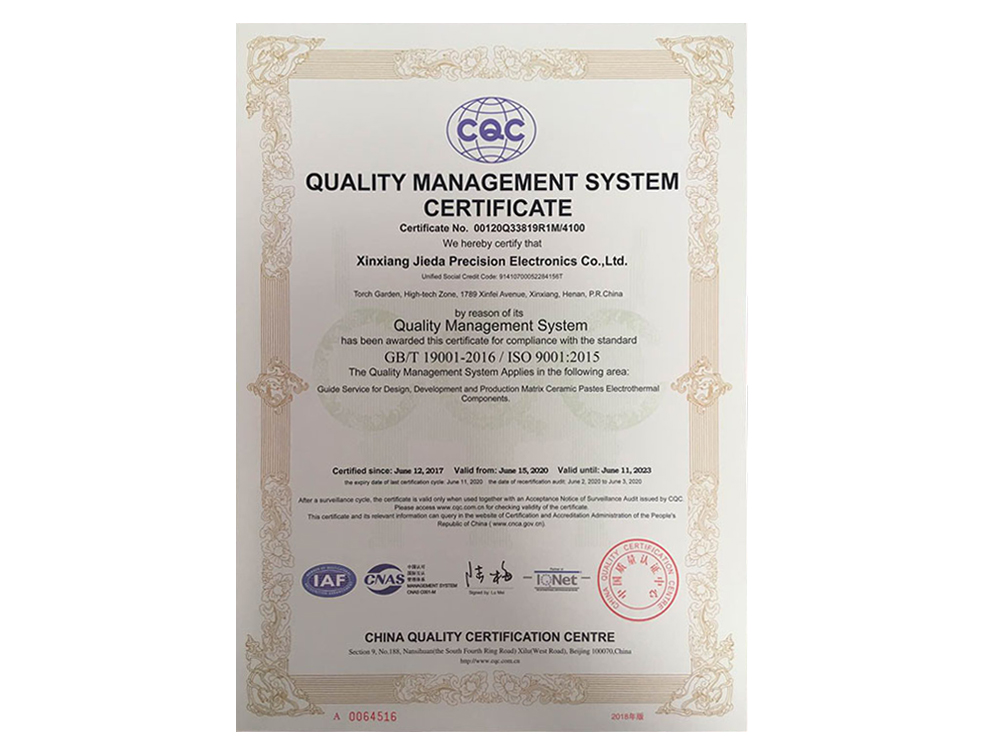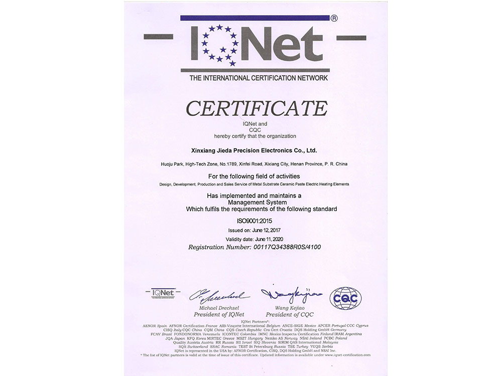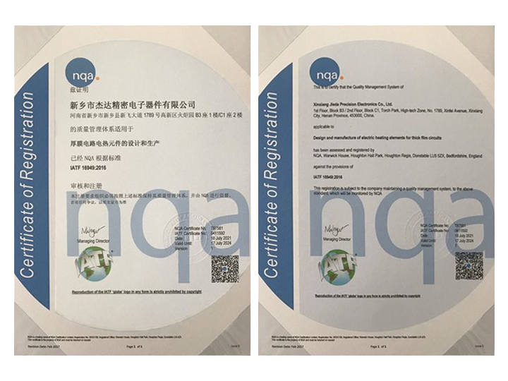 Established in year 2012, Xinxiang Jieda Precision Electronics Co., Ltd is a professional manufacturer and exporter that is concerned with the design, development and production of thick film heater, our company is in Xinxiang City, Henan province, with convenient transportation access. All our heaters comply with international quality standards and are greatly appreciated in a variety of different markets throughout the word.